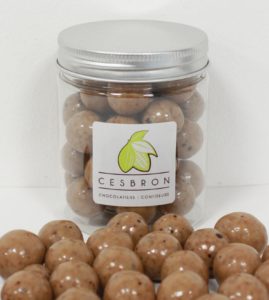 70% aux éclats de caramel, 70% aux éclats d’amandes.