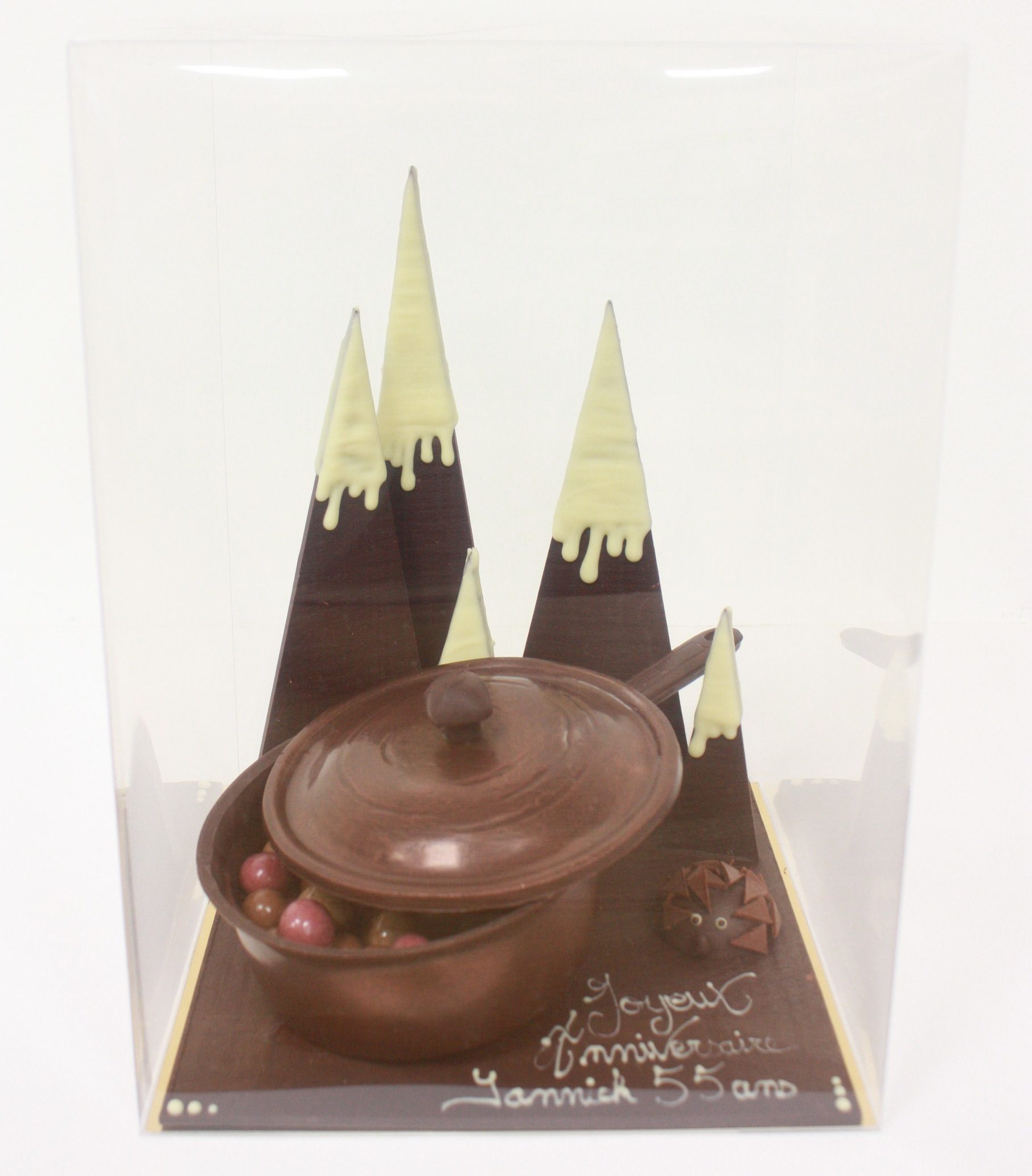 Ces deux styles de compositions sont fabriquées à base de chocolat noir, chocolat lait ou chocolat blanc. Les escarpins sont garnis d’une dizaine de bonbons au chocolat (praliné, ganache, nougat et caramel)et les sacs à main sont garnis d’une dizaine de nos 5 variétés de chocolat caramel.